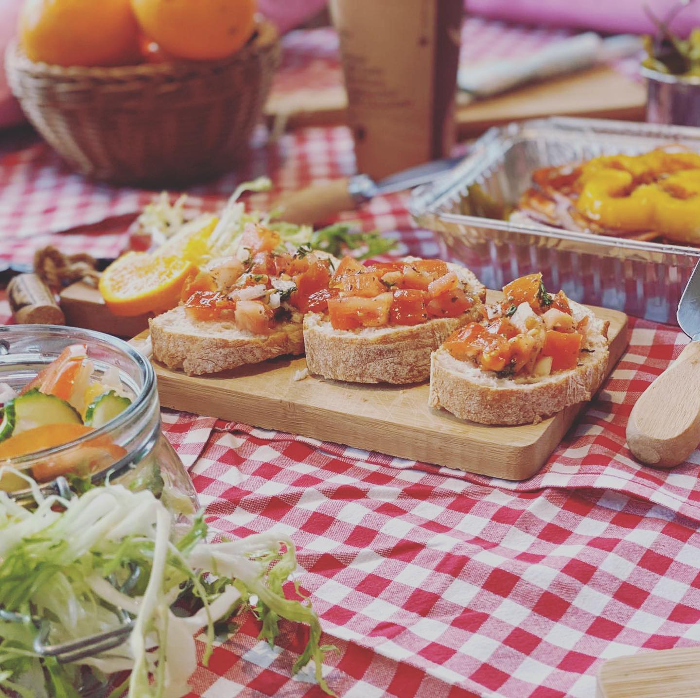 mit frischen Zucchini, Paprika, Kirschtomaten und Zwiebeln, dazu gemischter Salat, Olivenöl und Oregano 18